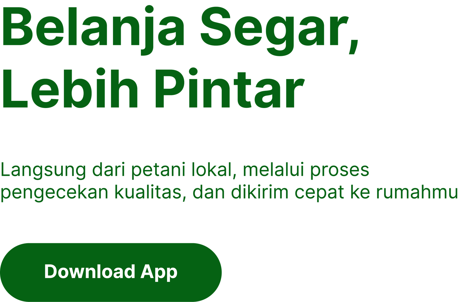 Belanja Bahan Segar Jadi Lebih Mudah Semua Kebutuhan dapur, diatur lebih praktis dari satu aplikasiPilihan sayur dan buah segar setiap hariLangsung dari sumber terpercaya dan selalu diperbarui setiap hariBelanja kapan saja, tanpa macet dan tanpa antre Hemat waktu tanpa perlu ke pasarHarga jelas dan mudah dikontrolNggak ada biaya tersembunyi, semua terlihat sejak awalDikemas dengan standar kualitas sebelum sampai ke tangan kamu Produk datang rapi dan terjaga kualitasnyaSegerIn, Cara Baru Belanja Bahan SegarSetiap masakan yang baik selalu dimulai dari bahan yang segar. SegerIn hadir untuk membantu kamu mendapatkan sayur dan buah berkualitas tanpa harus meluangkan waktu ke pasar. Dari petani lokal hingga ke rumahmu, setiap produk dipilih, dicek, dan dikirim dengan perhatian agar kesegarannya tetap terjaga.Dipanen dari petani lokal yang terpercayaDiperiksa dengan teliti sebelum dikirim Dikirim cepat agar tetap segar saat tibaAplikasi yang sederhana, nyaman, dan mudah